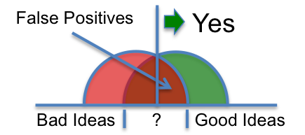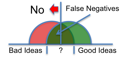 If an executive insists on using a simple high-pass filter, he or she will likely encounter the same tradeoff of sensitivity vs. specificity faced by the administrators of the PSA test. For example, if the executive has a habit of just saying ‘NO’, he or she risks the likelihood of False Negatives (good ideas left behind). If the executive has the equally bad habit of just saying ‘YES’, he or she risks the likelihood of False Positives (bad ideas pushed ahead).