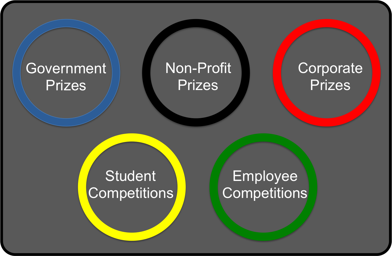 I’ve broken down innovation competitions into five types according to their different sponsors (there are probably more than five but there are only five Olympic rings (five continents)).